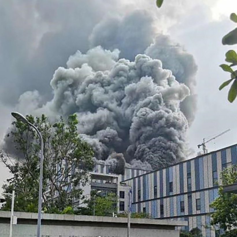 Huawei research lab in the Chinese city of Dongguan is on fire.