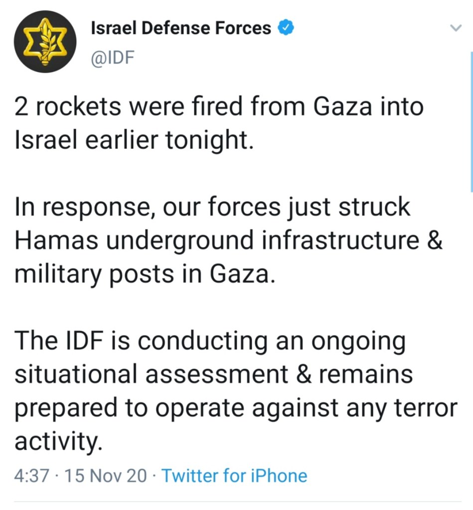 On Sunday morning, Israeli Army struck several Hamas positions in Gaza, after two rockets were launched from the territory and hit Southern Israel on Saturday night. The Israeli army tweeted that it ‘struck several Hamas underground infrastructure and military posts in Gaza.