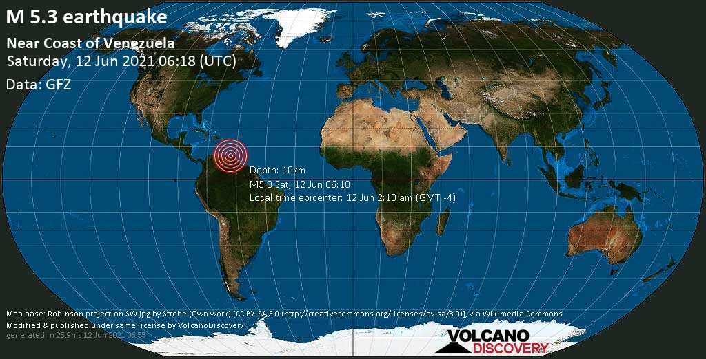 Just minutes ago, 2.18am local time, a 5.3-magnitude earthquake struck 47 km west of Guiria, Municipio Valdez, Sucre, Venezuela at a shallow depth of 10km. Shallow depth earthquakes tend to be felt more.