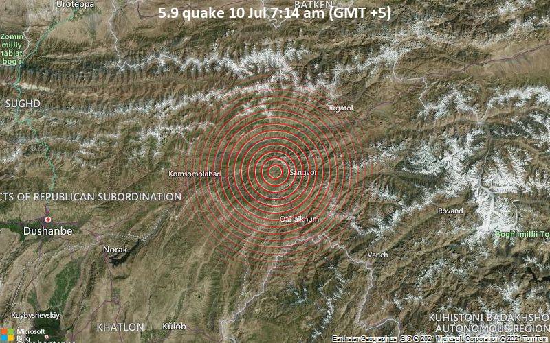 Hours ago a strong 5.8-magnitude earthquake struck Viloyati Khatlon, 27 km southeast of Rasht, Republican Subordination, Tajikistan at a depth of 10km. The German Research Centre for Geosciences (GFZ) were first to report the quake.