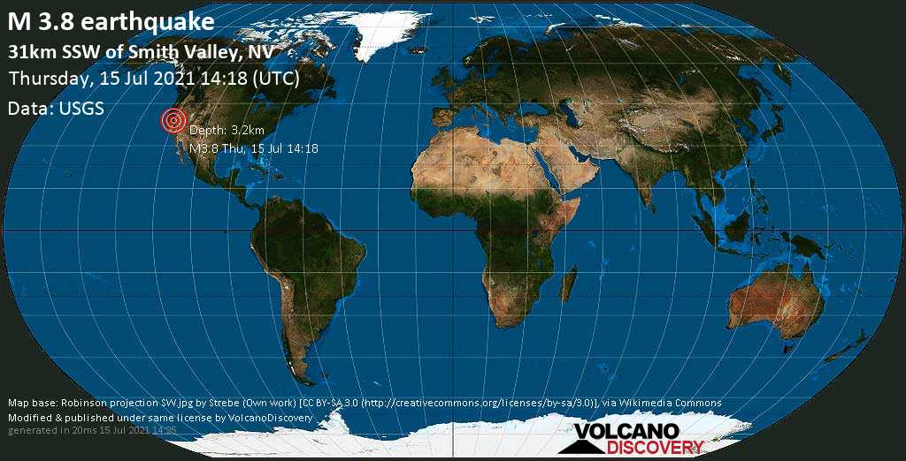 Minutes ago USGS recorded a 3.8-magnitude earthquake 39 miles southeast of South Lake Tahoe, El Dorado County, California at a shallow depth of 3.2km.