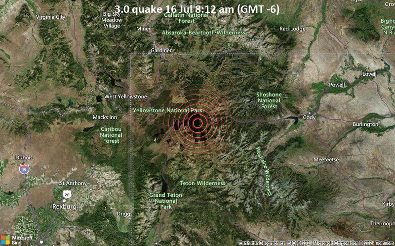 An hour ago USGS reported a 3.1-magnitude earthquake in Teton County, Wyoming, 40 miles east of West Yellowstone, Gallatin County, Montana, USA at a shallow depth of 7.2km.