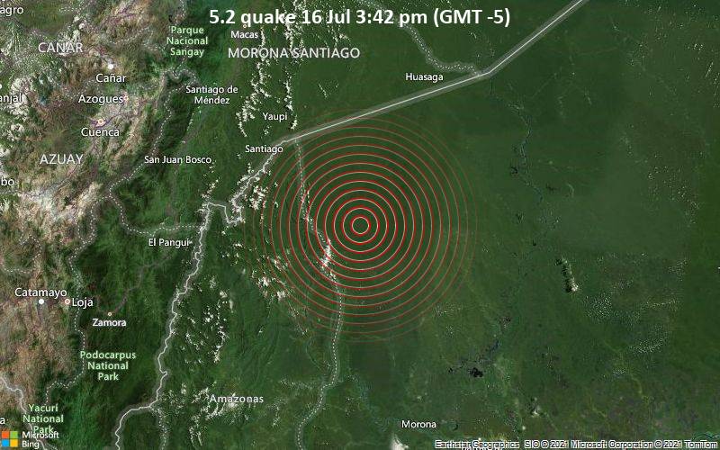 A 5.2-magnitude earthquake strikes near Santiago, Ecuador.