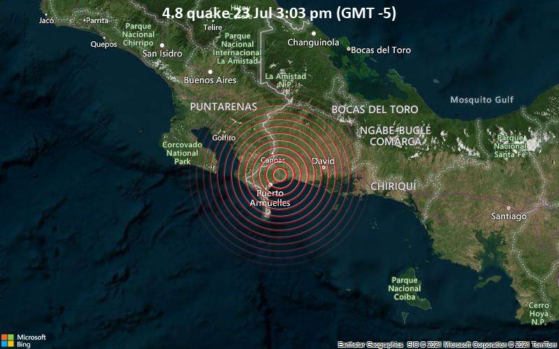 An hour ago the European-Mediterranean Seismological Centre (EMSC) reported that a 4.8-magnitude earthquake struck the Baru District, 48 km west of David, Provincia de Chiriqui, Panama at a depth of 16km.