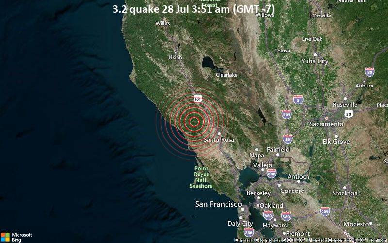 A 3.2-magnitude earthquake strikes Sonoma County, California, USA.