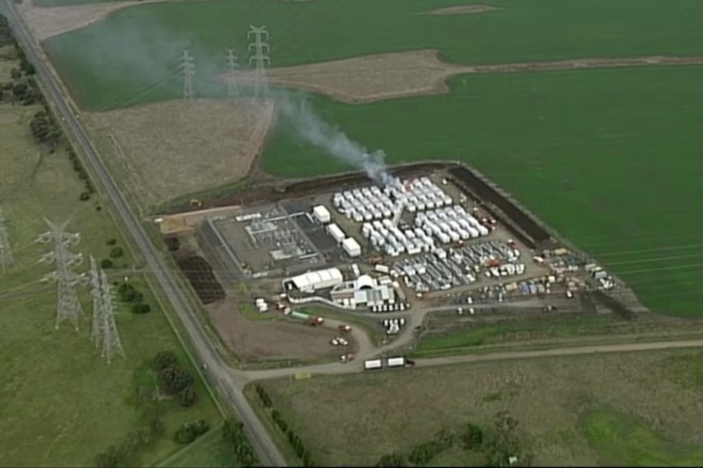 Tesla battery fire in Moorabool, Victoria, Australia.