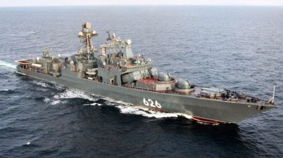 Fleet of Russian naval vessels in the English channel.