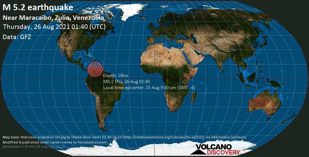 The German Research Centre for Geosciences (GFZ) reported that four hours ago a 5.2-magnitude earthquake struck 7.5 km northwest of Araure, Portuguesa, Venezuela at a shallow depth of 10km.