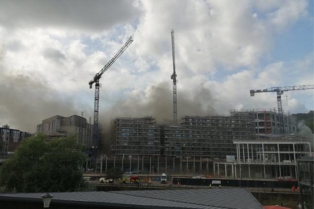 Moments ago a huge fire was reported at a building site in Durham city centre, England forcing nearby residents to shut their windows due to the thick smoke.