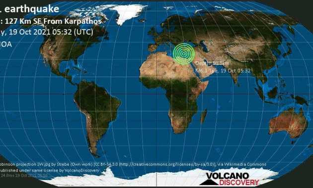 A 6.1-magnitude earthquake strikes Eastern Mediterranean Sea, Greece. Image Credit: VolcanoDiscovery Minutes ago, the European-Mediterranean Seismological Centre (EMSC) reported a 6.1-magnitude earthquake in Eastern Mediterranean Sea in Greece at a depth of 58.5km. Since the earthquake has just […] truthisacommodity October 19, 2021 Leave a Comment