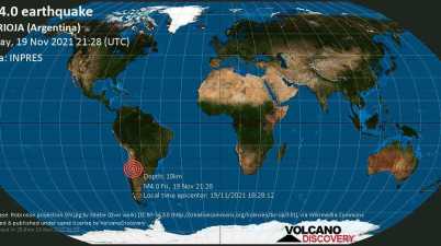 Image Credit: VolcanoDiscovery A 4.0-magnitude earthquake just struck Departamento de Independencia, La Rioja, 39 km north of San Agustin de Valle Fértil, Departamento de Valle Fértil, San Juan, Argentina at […]