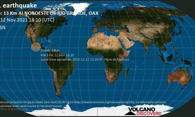 A 4.1-magnitude earthquake strikes Puerto Escondido, Mexico. Image Credit: VolcanoDiscovery The agency Servicio Sismológico Nacional (SSN) reported a 4.1-magnitude earthquake in Mexico 30 minutes ago. The earthquake struck Villa de Tututepec de Melchor Ocampo, 50 km northwest […] truthisacommodity November 12, 2021 Leave a Comment