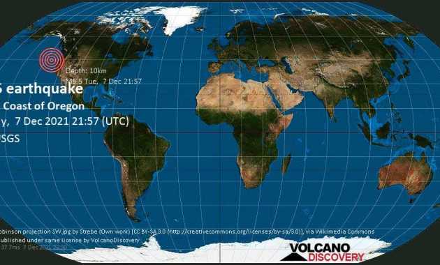 A 5.5-magnitude earthquake strikes off the coast of Oregon, USA. Image Credit: VolcanoDiscovery The United States Geological Survey (USGS) reported that a 5.5-magnitude earthquake struck off the coast of Oregon, United States at a shallow depth of 10km. Since the […] truthisacommodity December 7, 2021 Leave a Comment