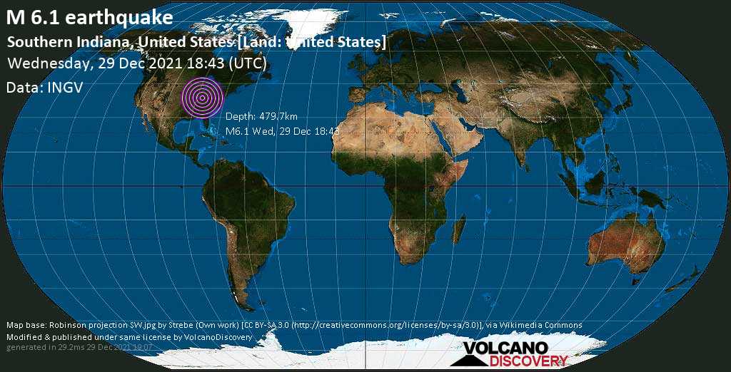 A 6.1-magnitude earthquake strikes Southern Indiana, United States.