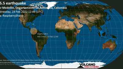 Image Credit: VolcanoDiscovery Moments ago, a 5.5-magnitude earthquake struck 6.6 km south of Medellin, Antioquia, Colombia at a shallow depth of 10km. The exact magnitude, epicenter, and depth of the […]