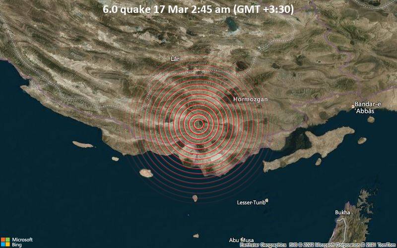 Minutes ago the German Research Centre for Geosciences (GFZ) reported that a 6.0-magnitude earthquake struck 57km northwest of Bandar-e Lengeh, Hormozgan, Iran.