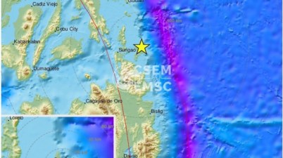 Moderate 5.0-magnitude earthquake near Caraga, Philippines.