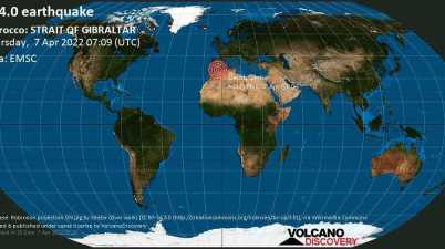 Image Credit: VolcanoDiscovery Minutes ago a 4.0-magnitude earthquake was reported in Alboran Sea, 36 km northeast of Al Hoceima, Morocco at a shallow depth of 2km. The exact magnitude, epicenter, […]