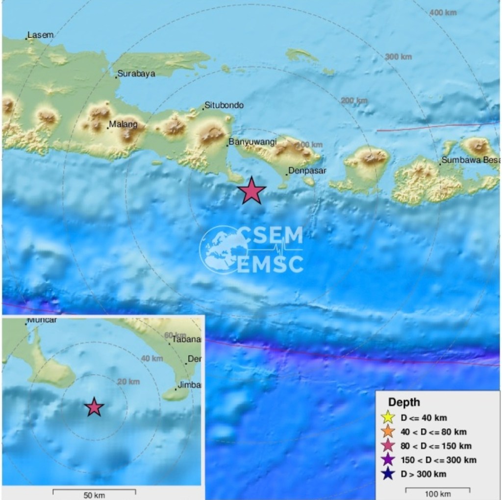 Minutes ago a 4.6-magnitude earthquake struck the Indian Ocean, 62 km southwest of Denpasar, Bali, Indonesia at a depth of 86km.