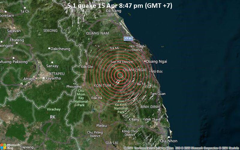 Minutes ago a 5.1-magnitude earthquake struck 55 km southwest of Quảng Ngãi, Quảng Ngãi Province, Vietnam at a shallow depth of 10km.