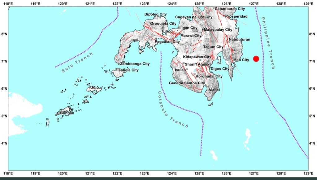 Towns or cities close to the epicenter of the quake that might have felt moderate shaking include Santiago, Manay, San Ignacio, Central, Mati, Compostela, Magugpo Poblacion, Bislijg City and Panabo.