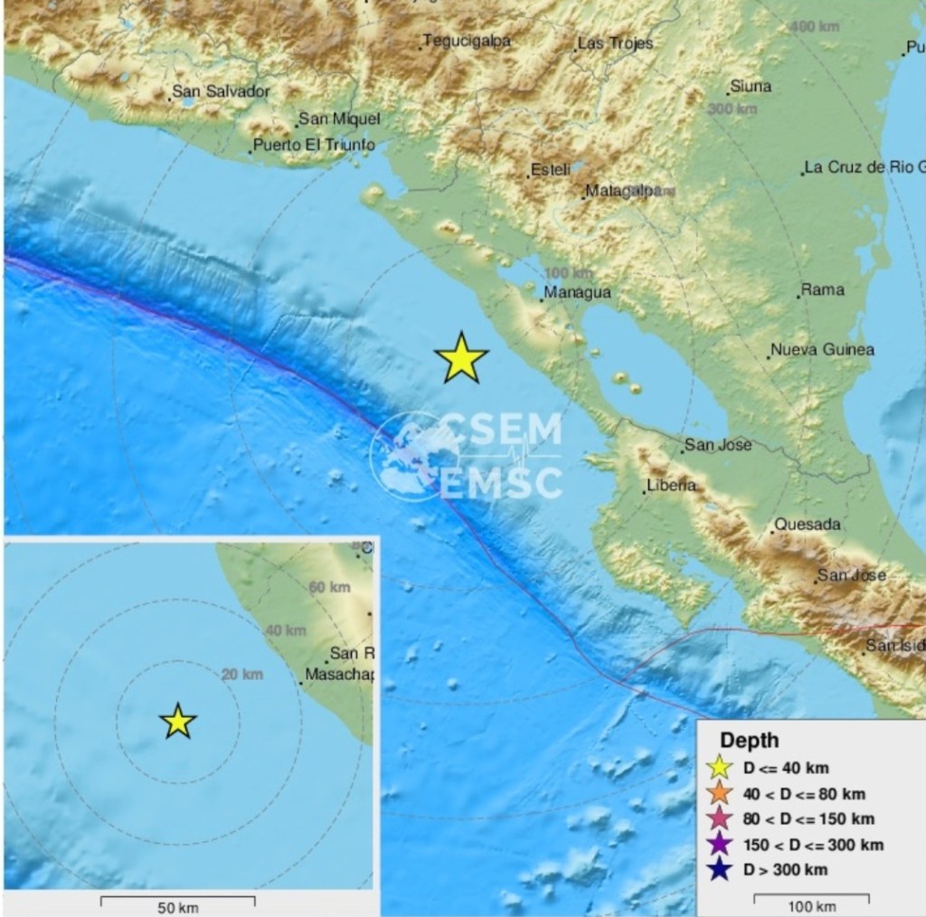 The strong earthquake was most likely felt in a number of towns or cities located close to the epicenter. These include Masachapa, San Rafael del Sur, Diriamba, El Crucero, Jinotepe, Nagarote, San Marcos, La Paz Centro, Leon, Managua and Isla de Ometepe Island. It is not yet known if there was any damage and any injuries. Possible tsunami.