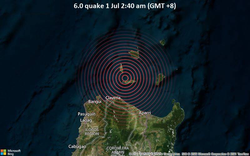 Minutes ago a significant 6.0-magnitude earthquake struck the South China Sea, 86 km northwest of Aparri, Cagayan, Philippines at a depth of 36.2km.