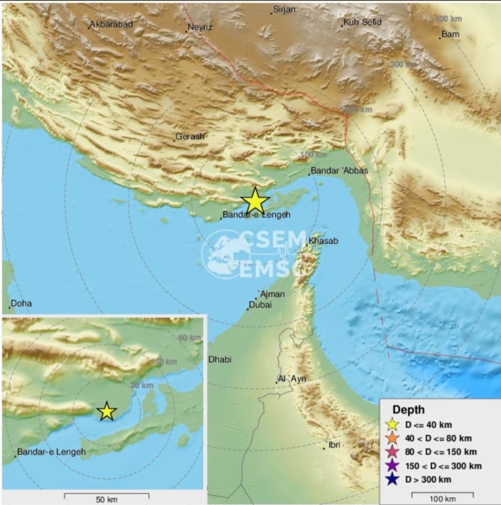 Minutes ago, another earthquake struck 96 km southwest of Bandar Abbas, Hormozgan, Iran. Southern Iran at a depth of 10km. The 6.3-magnitude earthquake struck in the same region as the previous earthquake an hour ago. The recent earthquake was felt in Abu Dhabi, United Arab Emirates and Doha, Qatar. This is the eight earthquake in Southern Iran which was also felt in several cities in Qatar.