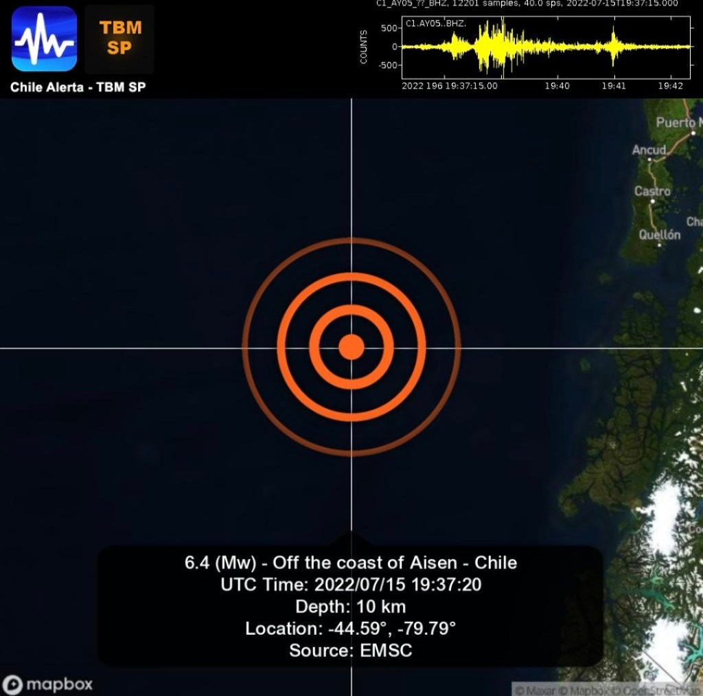 Minutes ago, a 6.4-magnitude earthquake struck off the Coast of Aisen, Chile at a shallow depth of 10km.