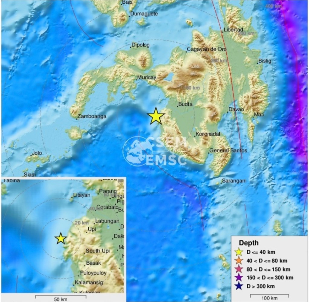A 5.7-magnitude earthquake in Mindanao, Philippines.