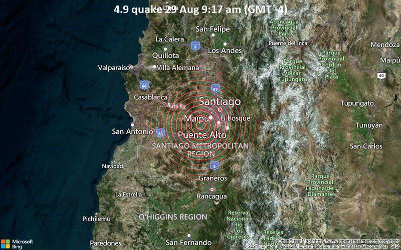 4.9-magnitude earthquake in Provincia de Santiago, Chile.