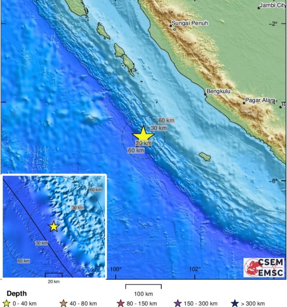 Moments ago a 6.6-magnitude earthquake struck the Indian Ocean, 201km southwest of Benkulu, Bengkulu, Indonesia at a depth of 10km.