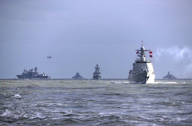 Chinese and Russian warships partaking in a joint naval exercise on December 27th, 2022. Image Credit: XU WEI/XINHUA VIA AP
