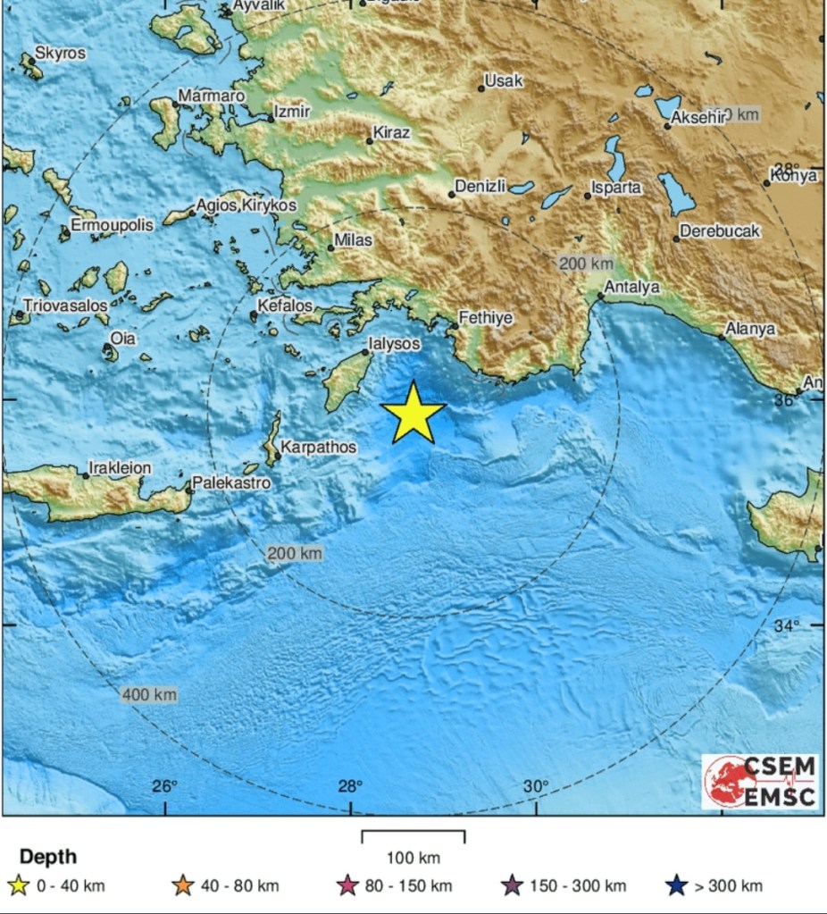 Moments ago a 5.7-magnitude earthquake struck the Eastern Mediterranean Sea, 86km southeast of Rhodos, Greece at a depth of 10km.
