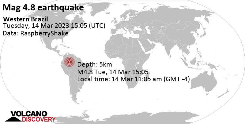 A 4.8-magnitude earthquake strikes Amazonas, Brazil.
