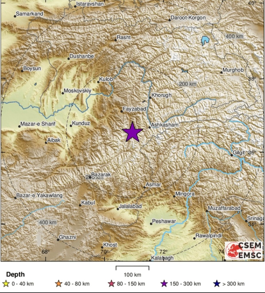 Just moments ago sources have reported a strong 6.8-magnitude earthquake in Hindu Kush Region, Afghanistan near the Tajikistan border at a depth of 184km.