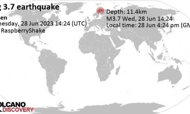 A 3.7-magnitude earthquake strikes Sweden. Image Credit: VolcanoDiscovery Moments ago a 3.7-magnitude earthquake struck Gällivare, Norrbotten, Sweden at a depth of 11.4km. The exact magnitude, epicenter, and depth of the quake might be revised within […] truthisacommodity June 28, 2023 Leave a Comment