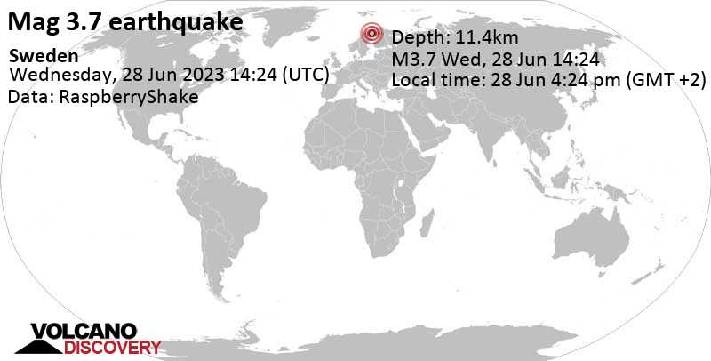 Moments ago a 3.7-magnitude earthquake struck Gällivare, Norrbotten, Sweden at a depth of 11.4km.