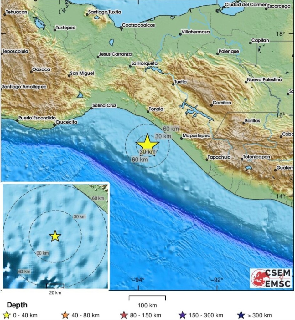 Moments ago EMSC reported a 6.4-magnitude earthquake in the North Pacific Ocean, 95 km south of Tonala, Chiapas, Mexico at a shallow depth of 10km.