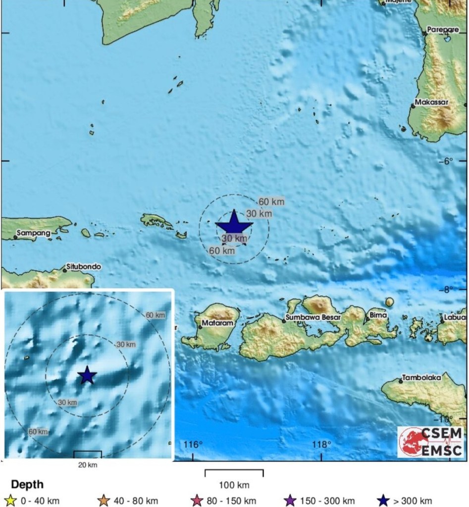 A 6.9-magnitude earthquake has just struck Java Sea, 195 km north of Matalam, Lombok, West Nusa Tenggara, Indonesia at a depth of 524.6km.