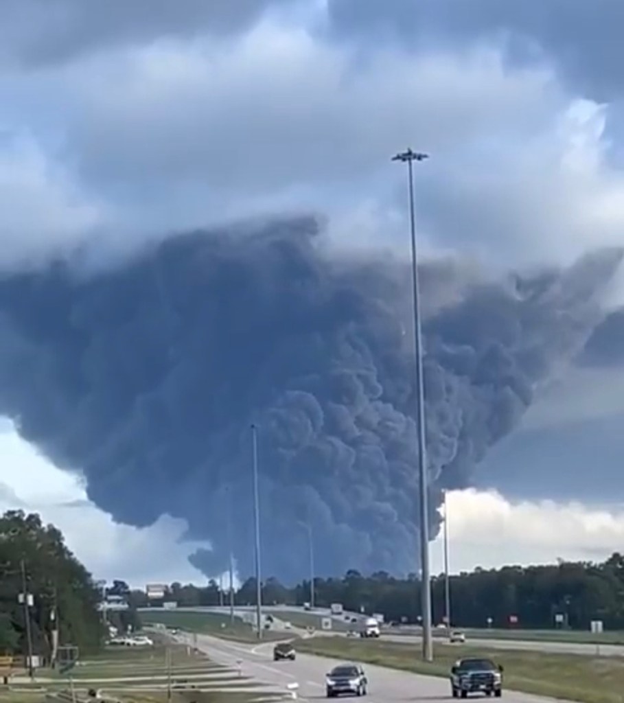 A chemical plant in Shepherd, Texas is in flames after an explosion on Wednesday morning. Authorities have ordered a ‘shelter-in-place’. The massive plume of blsck smoke could be seen from miles away.