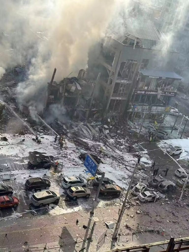 A powerful explosion ripped through a residential neighborhood in Sanhe City, Hebei Province, Northern China. The suspected gas explosion killed two people and injured 26 others. According to local reporters, the explosion occurred before 8am local time at a ground-floor restaurant. Three buildings were heavily damaged, one of which was left in a skeletal state.