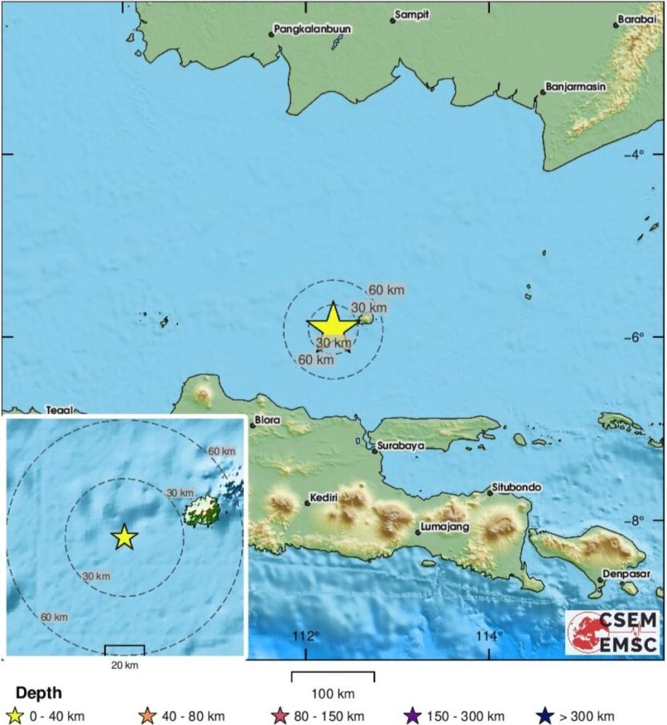 On Friday, March 22nd at 3.53pm Jakarta time, an earthquake struck the Java Sea, Indonesia, 38 km southwest of Bawean Island, East Java at a shallow depth of 10km.