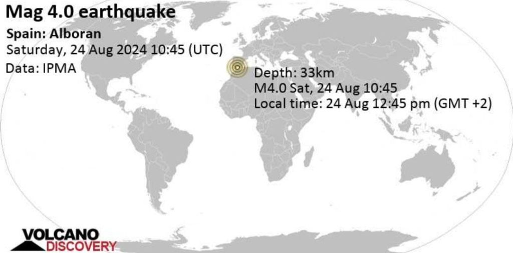 4.0-magnitude earthquake strikes the Alboran Sea, Spain.
