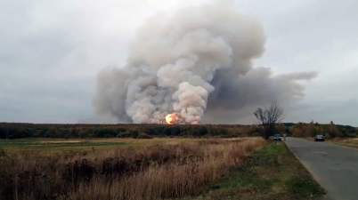 Explosion in Russia, after fire sets off explosives.