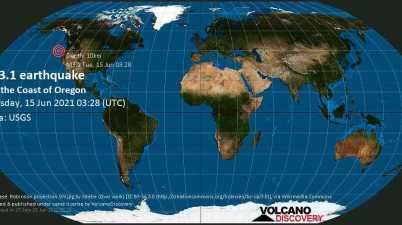 Image Credit: VolcanoDiscovery A few hours ago a 3.1-magnitude earthquake struck off the coast of Oregon in the North Pacific Ocean at a shallow depth of 10km. The exact magnitude, […]