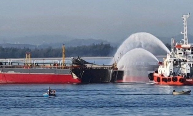 Oil tanker off the coast of Sri Lanka catches fire.