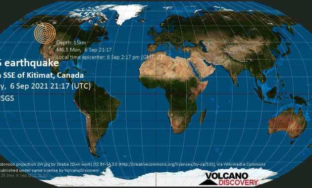 A 6.5-magnitude earthquake strikes Canada – Earthquake did not occur. It was as a result of a computer glitch. Image Credit: VolcanoDiscovery Minutes ago the United States Geological Survey (USGS) reported that a 6.5-magnitude earthquake struck 211 km south of Terrace, Regional District of Kitimat-Stikine, British Columbia, Canada at […] truthisacommodity September 7, 2021 Leave a Comment