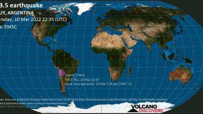 Image Credit: VolcanoDiscovery A minor earthquake of magnitude 3.5 was reported minutes ago by the European-Mediterranean Seismological Centre (EMSC). It occured 45km west of Abra Pampa, Departamento de Cochinoca, Jujuy, […]