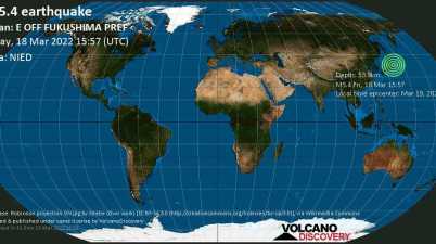 Image Credit: VolcanoDiscovery Minutes ago, a 5.4-magnitude earthquake struck the North Pacific Ocean, 89 km southeast of Ishinomaki, Honshu-miyagi-ken, Japan at a depth of 53.9km. The exact magnitude, epicenter, and […]